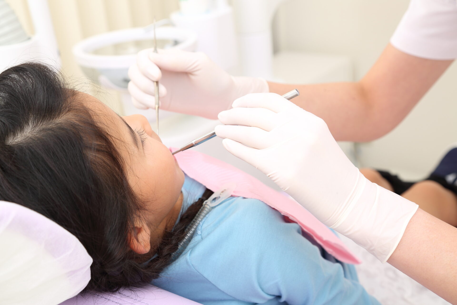 治療が初めて・怖がりなど歯科治療が難しい場合は、衛生士さんによるハミガキやPMTCなどで治療環境に慣れてもらいながら虫歯治療に進めています。大人が押さえつけて虫歯治療を行わなければならないこともあるとは思いますが、当院ではそのような手法は行わずに時間がかかっても少しずつ進める方法で治療にあたっています。