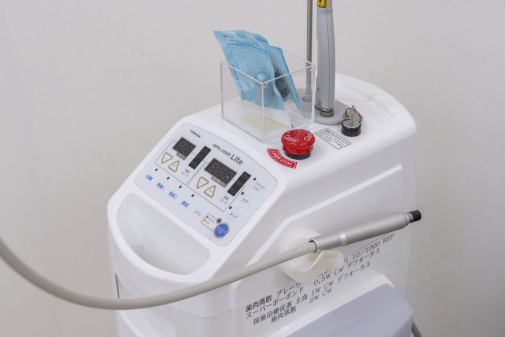 歯肉の炎症については炭酸ガスレーザーを利用したレーザー治療を行っています。さらに、医療用拡大鏡を使用しながら低侵襲な治療を心がけています。